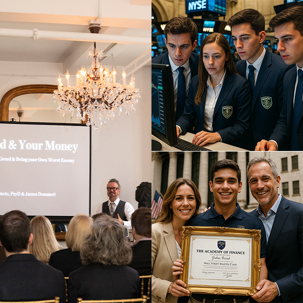 At the heart of the Academy’s curriculum is the award-winning book The Journey to Wealth, written by our co-founder and Chairman, James E. Demmert — one of Barron’s Top Financial Advisors and a respected voice on Wall Street. This acclaimed guide forms the foundation of our program, offering students a clear and strategic framework to understand financial markets, build lasting wealth, and make sound decisions. Its core principles are brought to life through real-world simulations, portfolio construction, and personal financial planning — giving students the opportunity to apply what they learn in tangible, meaningful ways.
